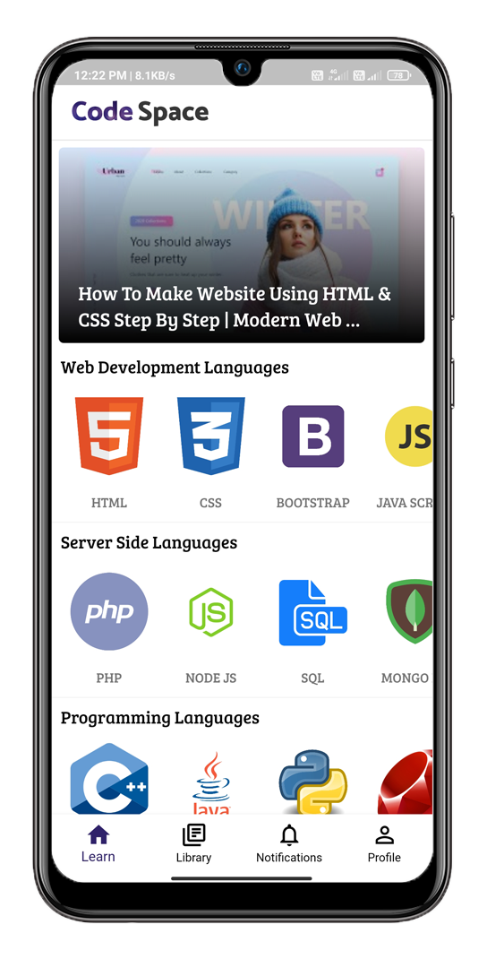 Code Space is the best digital source for learning. Provides more than 50+ courses.
