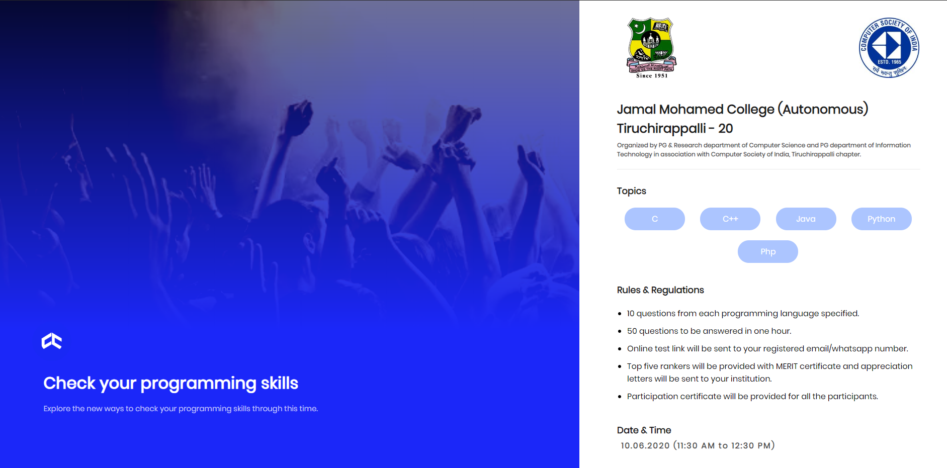 Jamal Mohamed College Trichy conducted NLPAT - 2020.