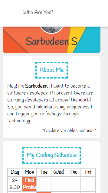 Hear about me!My name is Sarbudeen. I am pursuing a Bachelor of Computer Application in Jamal Mohamed College. I love learning computer languages. I make innovations such as creating Applications & Websites. I believe programming can do everything.
